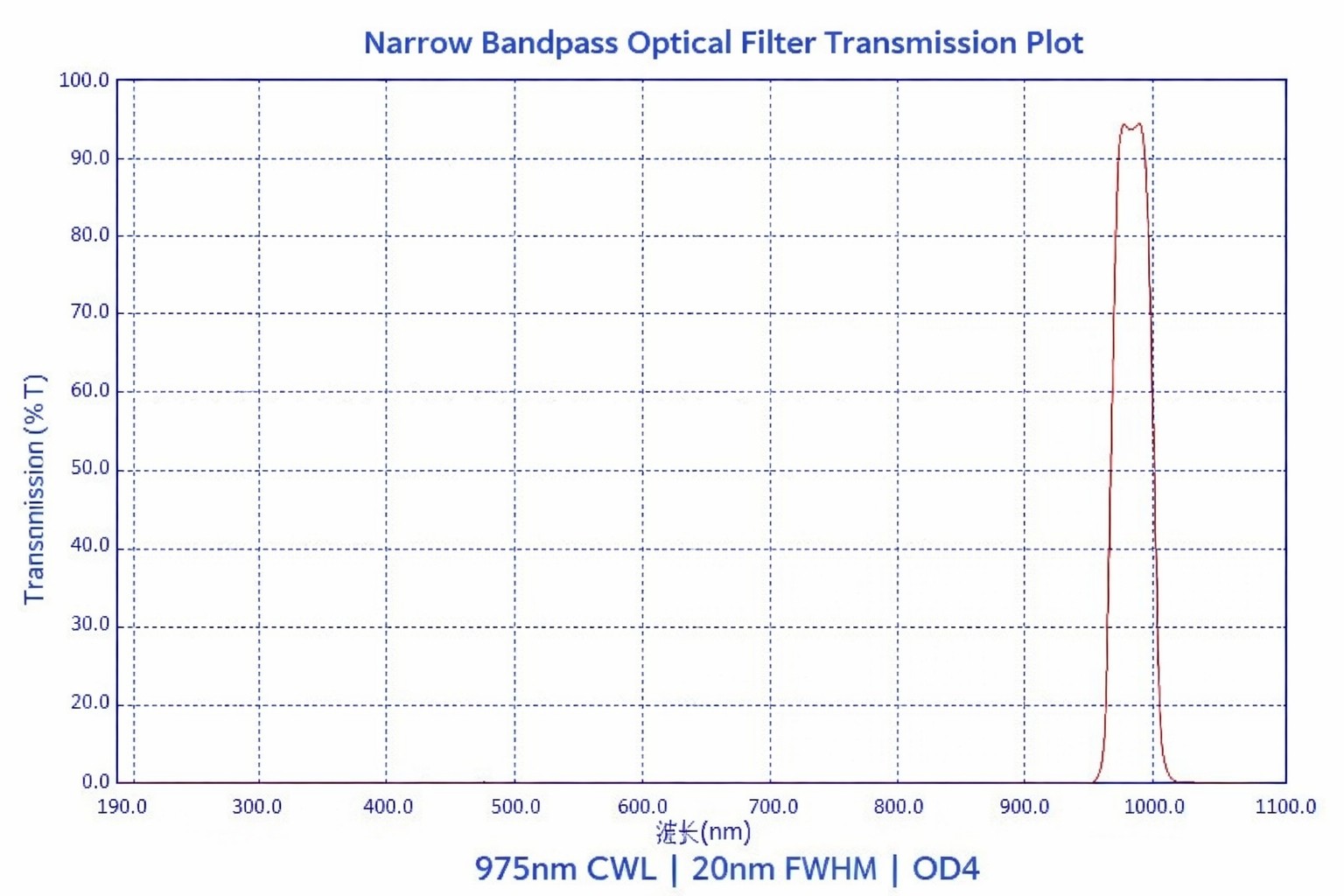 This 975nm narrow bandpass filter is a high-performance