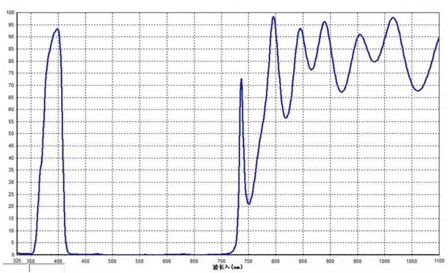 This 400nm + Infrared dual bandpass filter is a glass-based, precision